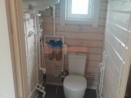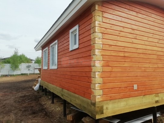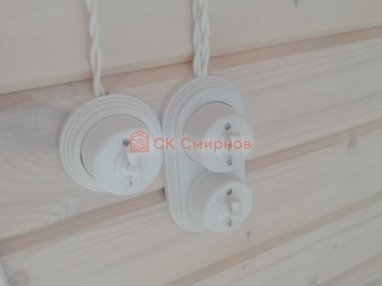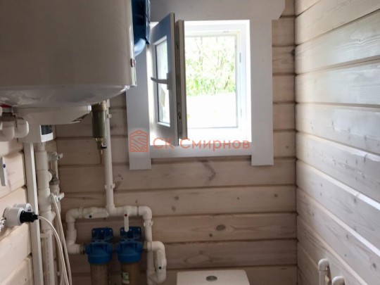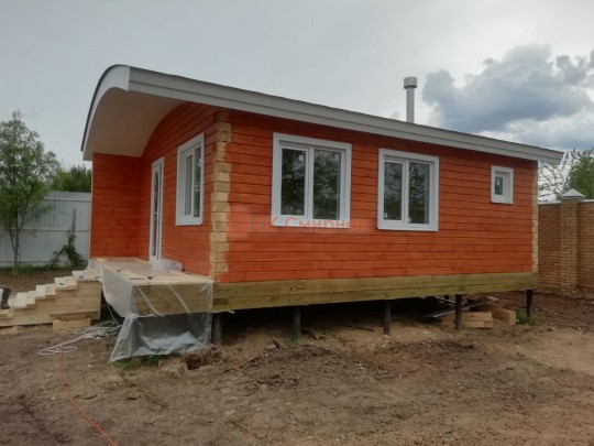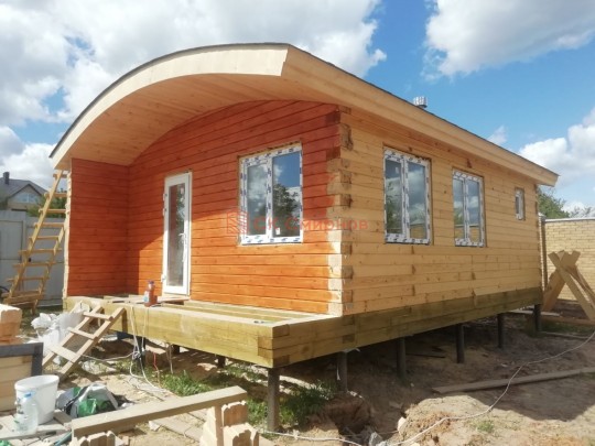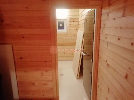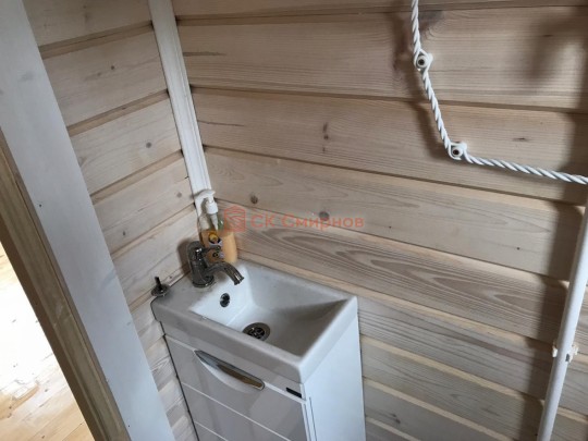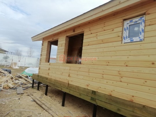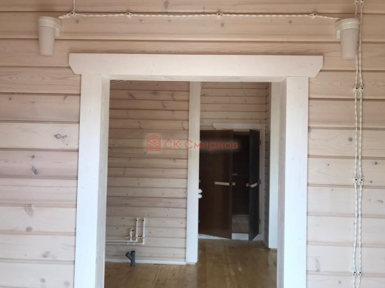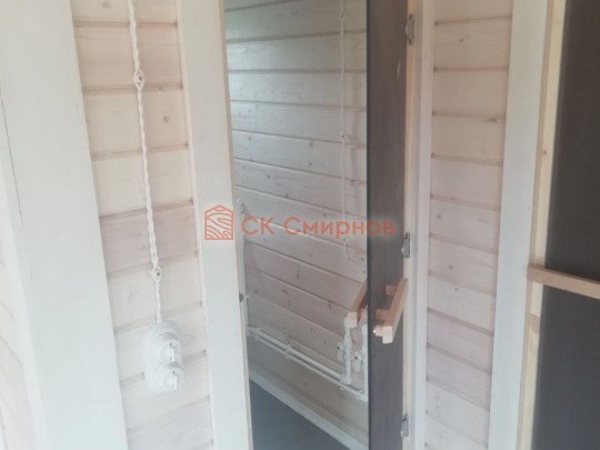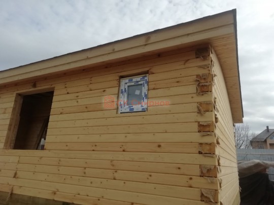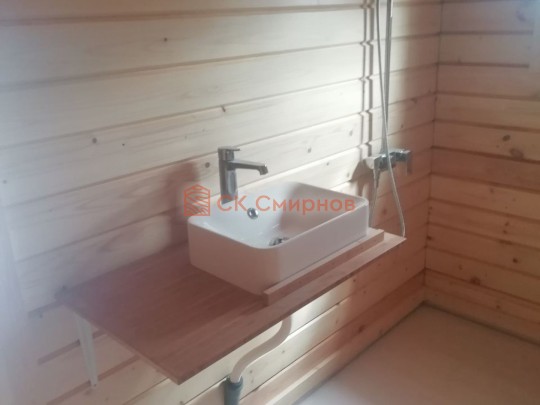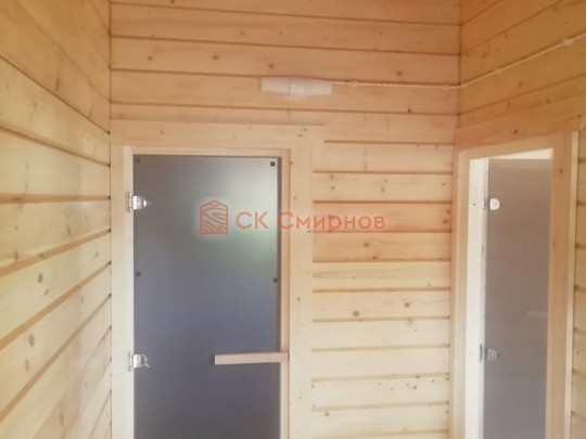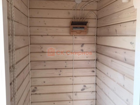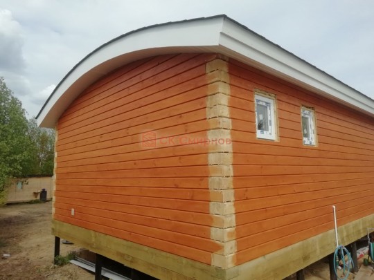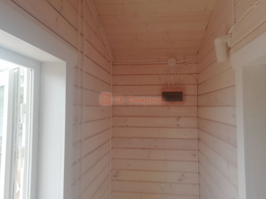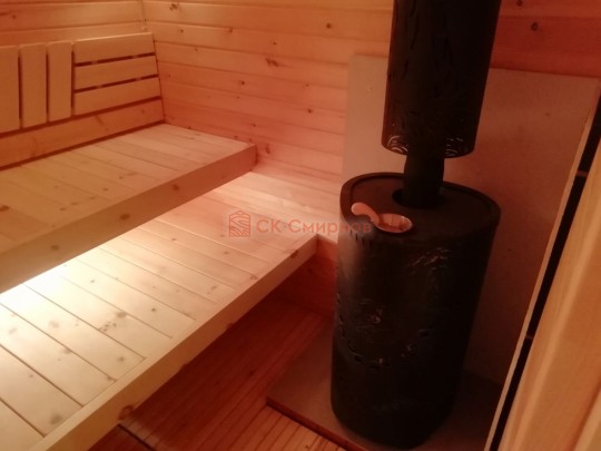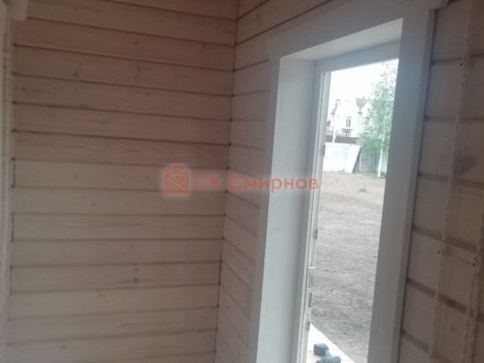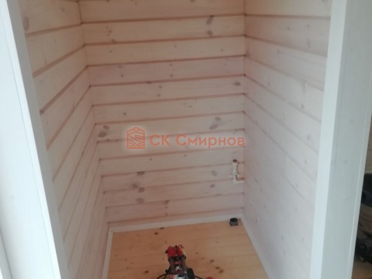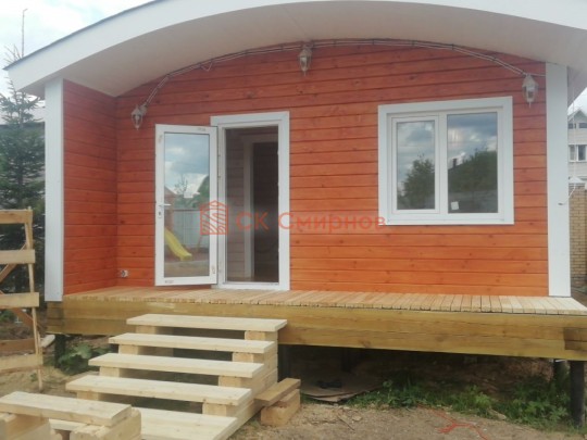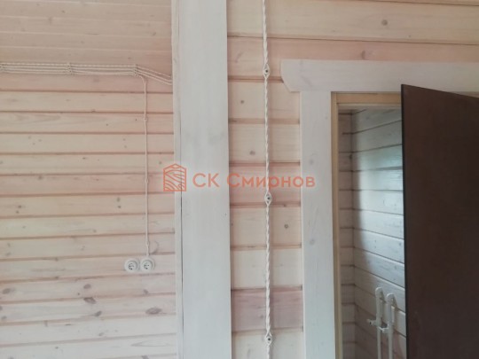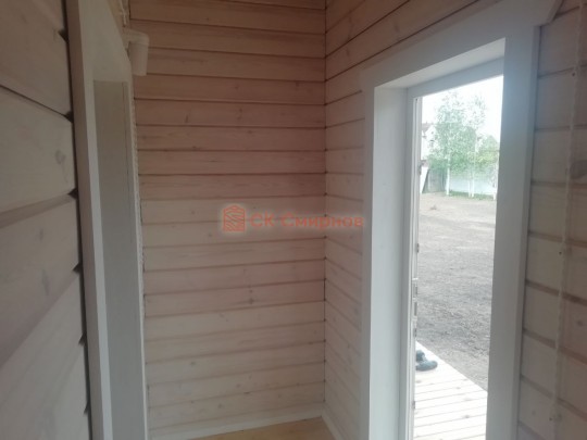 • Отделочные работы. На этом этапе устанавливаются окна, двери, электропроводка, освещение, плинтуса, откосы, печное и душевое оборудование, производится покраска стена снаружи — всё, что предусмотрено договором. В зависимости от объёма работ на отделку может уйти от 3 до 10 дней.