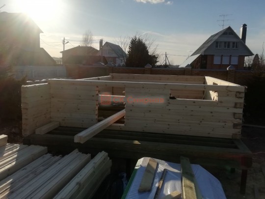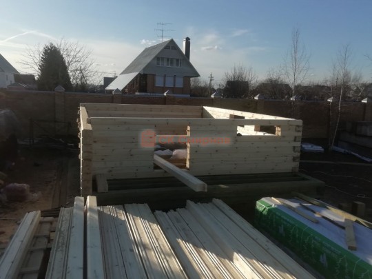 • Сборка сруба. От обвязки до кровли — в зависимости от сложности и размеров объекта может занимать от 7 до 30 дней. По завершению этого этапа на участке стоит незамкнутый контур на фундаменте и под крытой крышей.