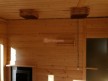 Главная проблема брусовых домов — усадка, после которой в срубе возникают щели в палец толщиной. Так случается, когда строят из дешёвого сырого бруса, плотно сажая венцы на гвозди (деревянные или металлические — без разницы). Мы же тратим время на сборку со сверлением. То есть сажаем брусья на металлические гвозди и в верхнем венце высверливаем отверстие под каждую шляпку. Поэтому во время усадки бруски не зависают на гвоздях, деформируя сруб, а свободно по ним скользят. Технология трудо- и времязатратная, но результат потрясающий — даже в срубах из сырого бруса практически нет щелей.
