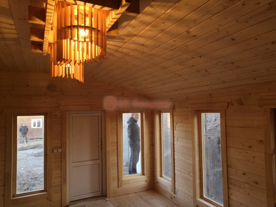 Окна мы устанавливаем настоящие деревянные стеклопакеты с фурнитурой как на пластиковых окнах, дерево используется клееное, повторюсь, не имитация деревянных стеклопакетов, а именно качественные окна.