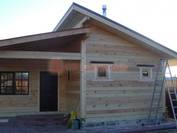Не дает усушки. Отделочные работы сразу после возведения сруба.