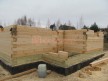 Из 9х14см, 14х14 см или 14х19 см. Сборка сруба в теплый угол на нагеля или гвозди 200 мм со сверлением отверстия в верхнем брусе (в зависимости от вида бруса).